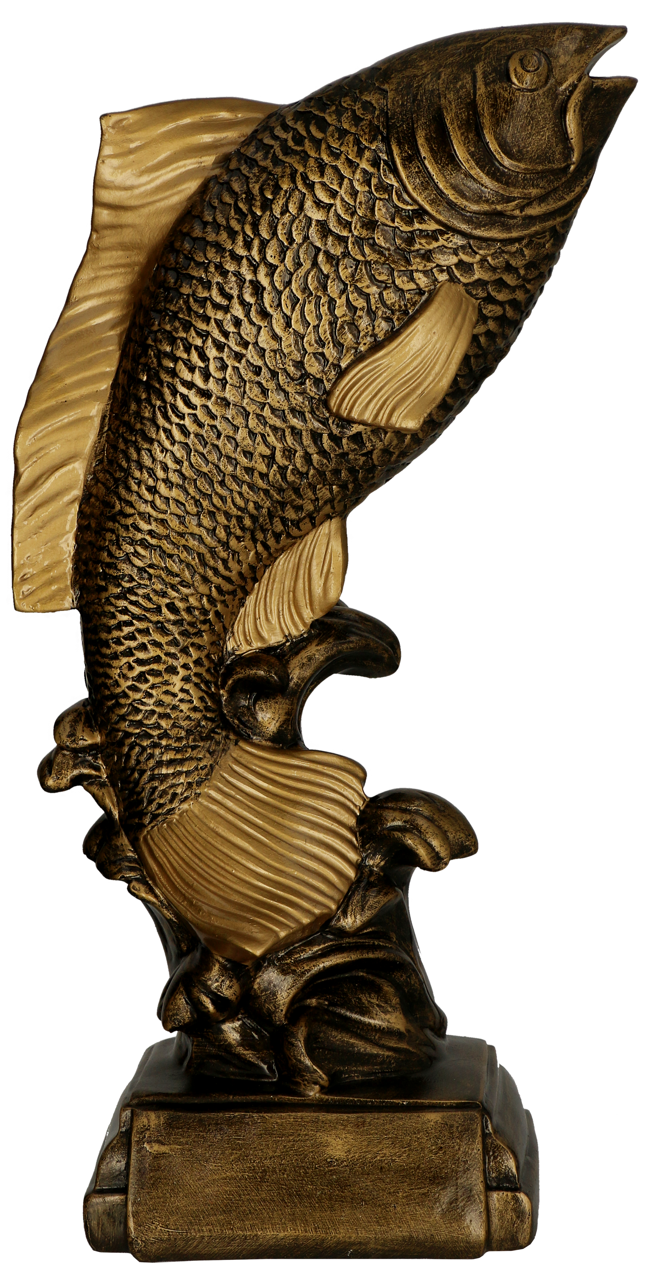 Figurka odlewana karp, o wysokości 37 cm i symbolu RFST3054A. Cena zawiera usługę grawerowania na podstawie techniką laserową (dowolny tekst lub logo) w rozdzielczości 1000 DPI lub usługę nadruku kolorowego techniką LUXORJet w rozdzielczości 5760 x 1440 dpi. Więcej informacji: biuro@informat.pl