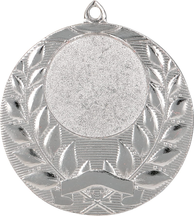 Medal MMC1750/S srebrny o średnicy 50 mm i grubości 3 mm. Cena zawiera usługę nadruku kolorowego z tyłu medalu techniką LUXORJet bezpośrednio na metalu w rozdzielczości 5760 x 1440 dpi lub wykonania wklejki techniką laserową (dowolny tekst lub logo) na laminacie grawerskim w rozdzielczości 1000 DPI. Z przodu medalu miejsce na emblemat 25 mm lub wklejkę. Zapraszam do zapoznania się z ofertą wstążek do medali. Więcej informacji: biuro@pucharki.pl