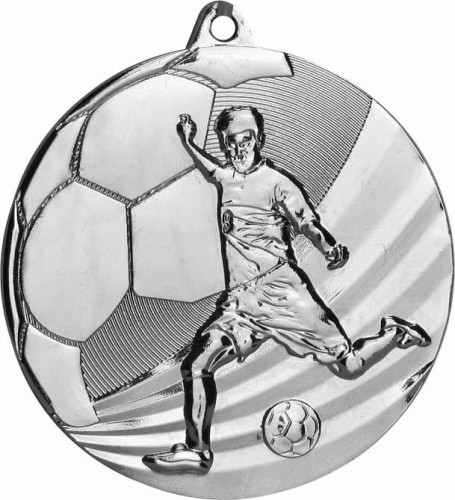 Medal MMC5055/S srebrny piłka nożna o średnicy 50 mm i grubości 3 mm. Cena zawiera usługę nadruku kolorowego z tyłu medalu techniką LUXORJet bezpośrednio na metalu w rozdzielczości 5760 x 1440 dpi lub wykonania wklejki techniką laserową (dowolny tekst lub logo) na laminacie grawerskim w rozdzielczości 1000 DPI. Z przodu medalu miejsce na emblemat 25 mm lub wklejkę. Zapraszam do zapoznania się z ofertą wstążek do medali. Więcej informacji: biuro@pucharki.pl