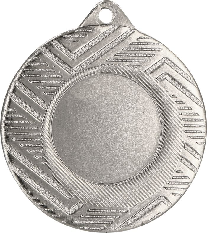 Medal MMC5950/S srebrny o średnicy 50 mm i grubości 2 mm. Cena zawiera usługę nadruku kolorowego z tyłu medalu techniką LUXORJet bezpośrednio na metalu w rozdzielczości 5760 x 1440 dpi lub wykonania wklejki techniką laserową (dowolny tekst lub logo) na laminacie grawerskim w rozdzielczości 1000 DPI. Z przodu medalu miejsce na emblemat 25 mm lub wklejkę. Zapraszam do zapoznania się z ofertą wstążek do medali. Więcej informacji: biuro@informat.pl