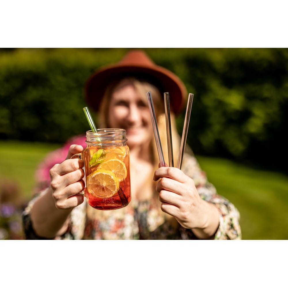 Zestaw szklanych słomek wielokrotnego użytku B'RIGHT, 4 szt., czyścik z blaszką pod znakowanie w komplecie | Lea V8892-00
